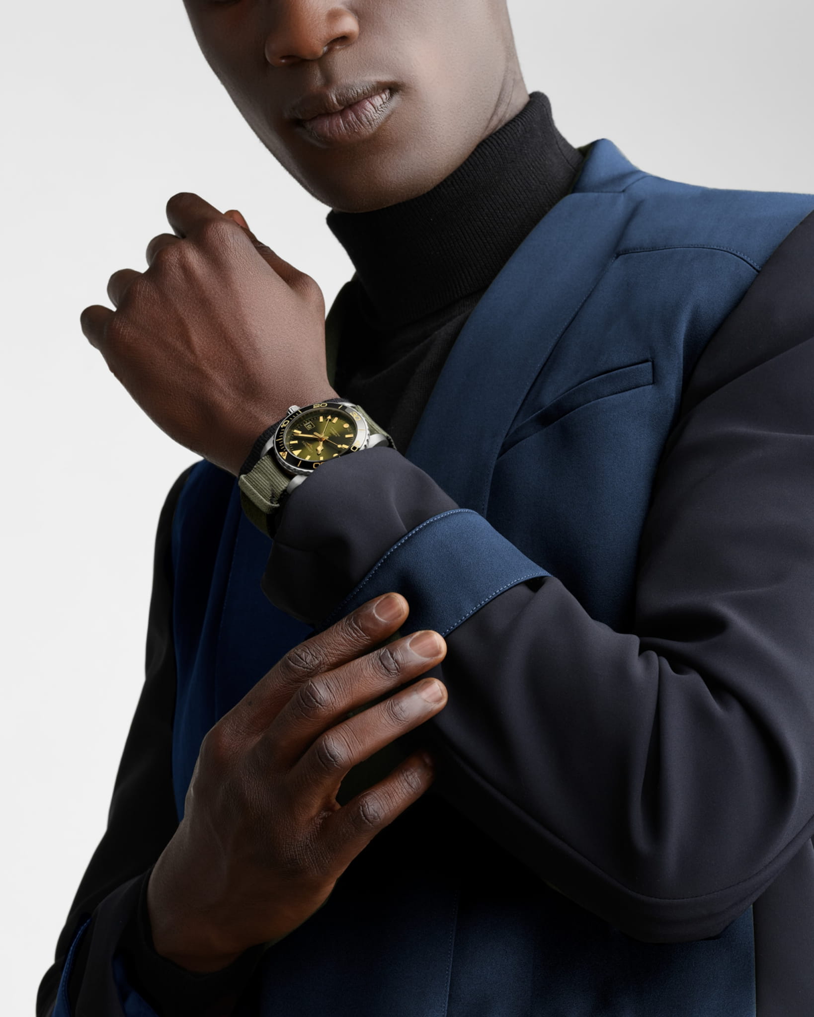HydroConquest GMT wyróżnia się również kopertą ze stali nierdzewnej o średnicy 41 mm z przykręcanym rewersem i koronką. Ten model jest wyposażony w jednokierunkowy bezel z czarnej ceramiki z nacięciami i fluorescencyjną kapsułą. Tarcza jest zielona. Ta wersja jest dostępna z bransoletą ze stali nierdzewnej albo zielonym paskiem NATO z materiału pochodzącego z recyklingu.
