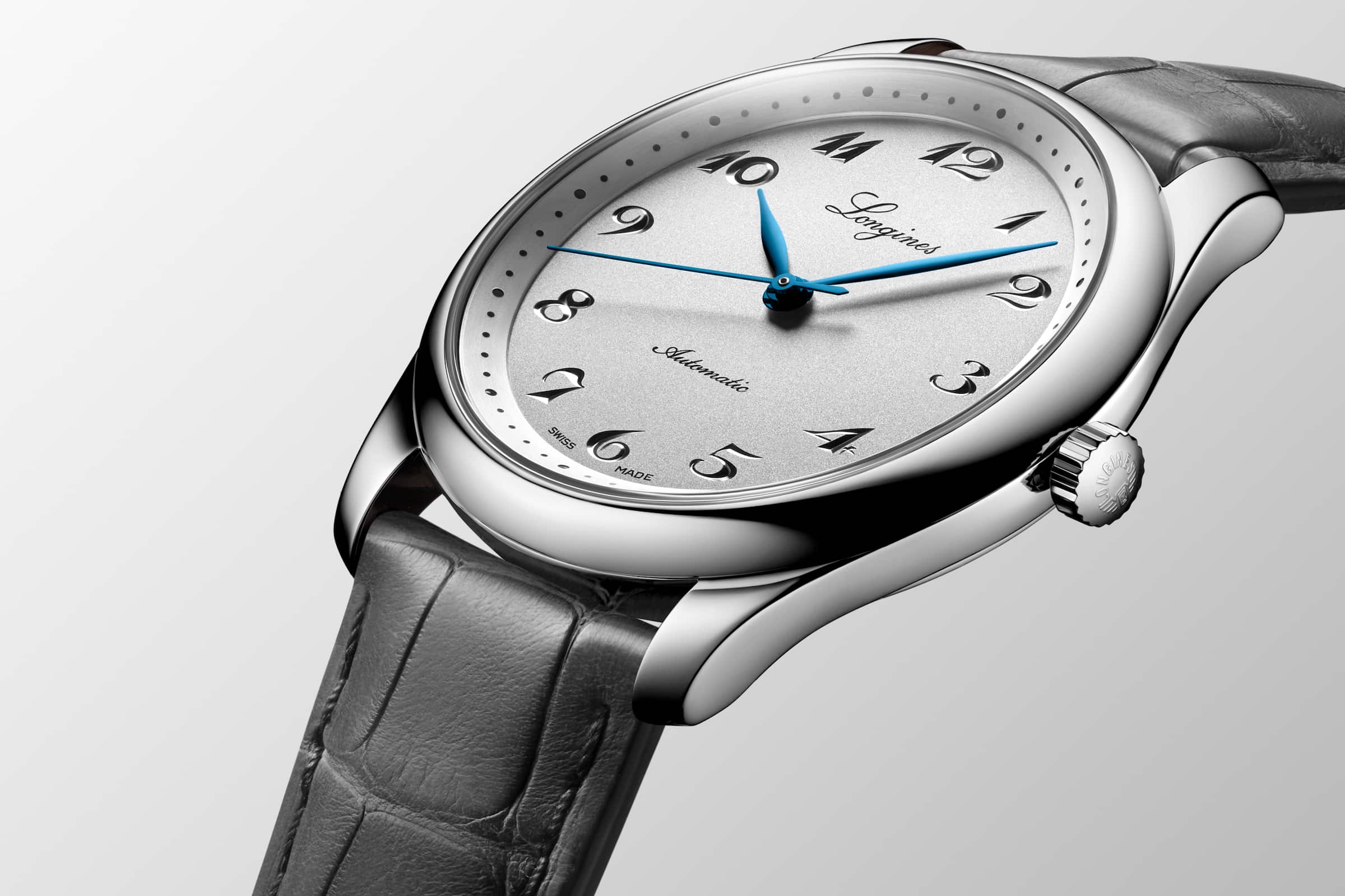 Mamy niezwykłą przyjemność zaprezentować wyjątkowy, niepowtarzalny czasomierz Longines, linii Master Collection wyprodukowany dla uczczenia 190-lecia istnienia marki. The Longines Master Collection 190th Anniversary może być gratką dla kolekcjonerów, wielbicieli marki. Koperta zegarka została wykonana ze stali szlachetnej. Wewnątrz koperty pracuje mechanizm wykonany specjalnie dla firmy Longines, kaliber L888, z krzemową sprężyną balansu oraz rezerwą chodu wynoszącą około 72 godziny. Dekiel czasomierza jest przeszklony szkłem szafirowym, więc bez przeszkód możemy podziwiać pracę mechanizmu oraz kunszt szwajcarskich zegarmistrzów. Całości dopełnia elegancka tarcza w kolorze srebrnym z wygrawerowanymi cyframi arabskimi. Pasek został wykonany ze skóry z aligatora. The Longines Master Collection 190th Anniversary objęty jest pięcioletnią, międzynarodową gwarancją producenta.