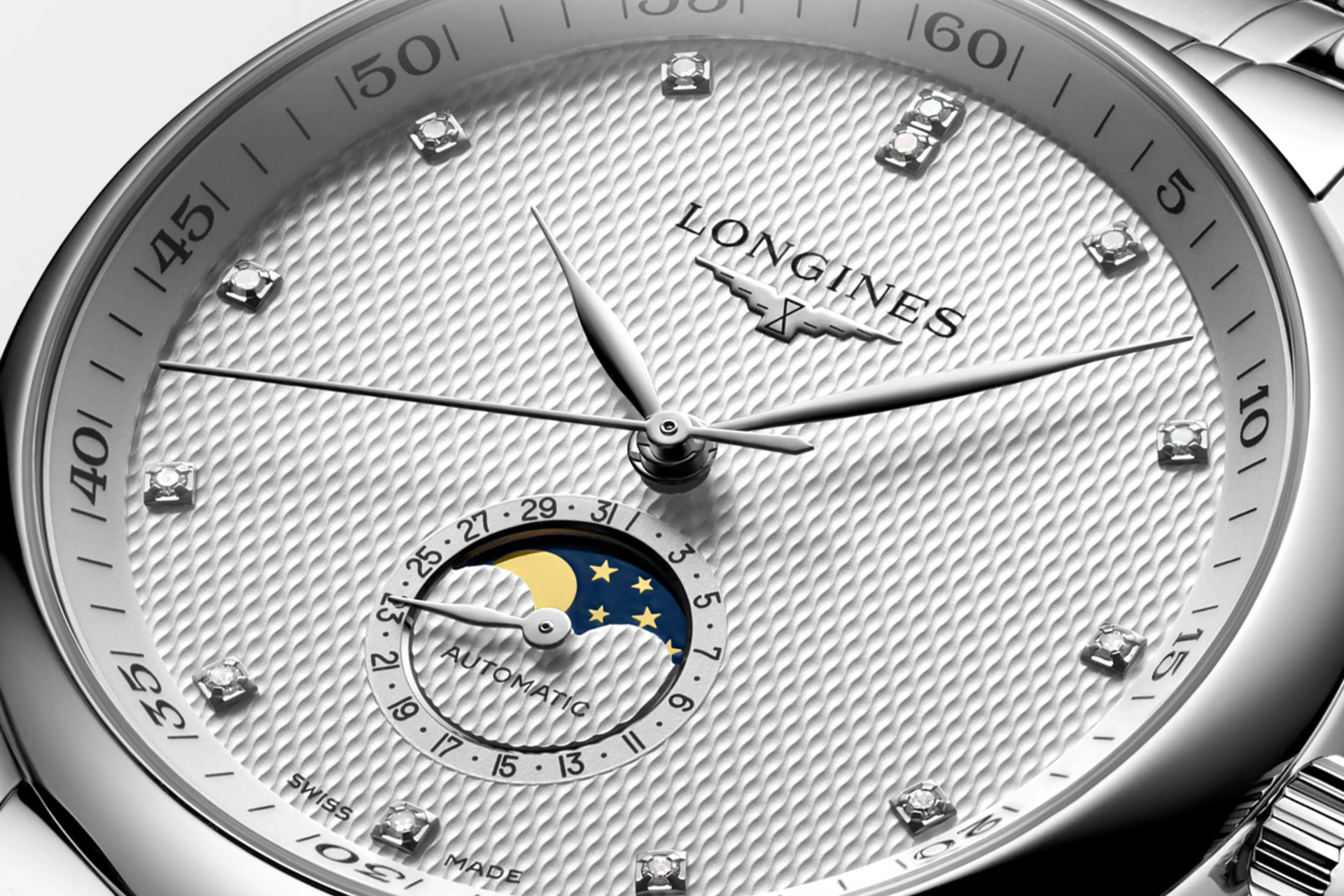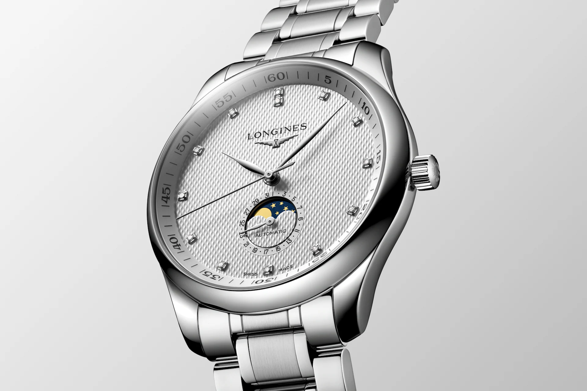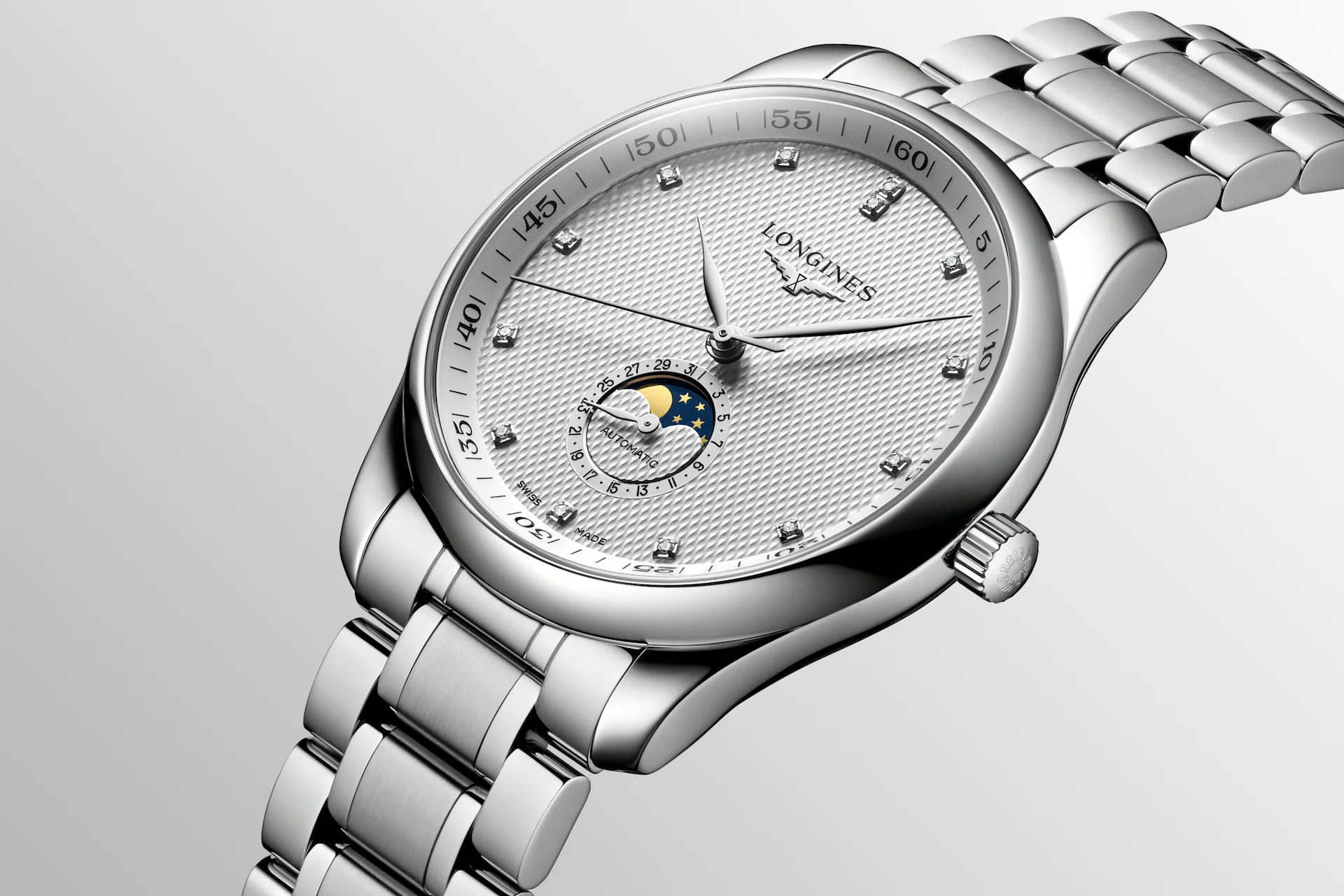 Firma Longines wprowadziła na rynek linię Master Collection w 2005 roku z ogromnym sukcesem. Zegarki łączą w sobie klasyczny, elegancki wygląd i niepowtarzalny styl. Niewątpliwie, to wspaniała propozycja dla osób ceniących sobie tradycje zegarmistrzowskie, nowoczesność na wysokim światowym poziomie. Wewnątrz koperty pracuje mechanizm automatyczny Calibre L899 rezerwą chodu wynoszącą około 72 godziny.  Wyjątkowo okazale prezentuje się gliszowana tarcza czasomierza. Znaczniki godzin na tarczy ozdobiono brylantami. Całości dopełniają fazy księżyca wraz z kalendarzem na godzinie szóstej oraz pasek wykonany ze skóry aligatora. Linia czasomierzy Master Collection objęta jest pięcioletnią, międzynarodową gwarancją producenta.