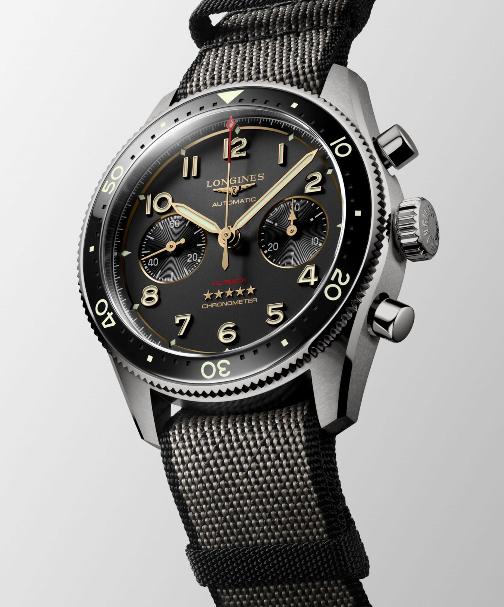 Kolekcja Longines Spirit została poszerzona o model wyposażony w funkcję flyback. Longines Spirit Flyback Titanium 42 mm napędza zupełnie nowy, opracowany specjalnie dla Longines, odporny na działanie pól magnetycznych mechanizm z krzemową sprężyną balansu. Ten niezwykle precyzyjny kaliber, zapewniający 68-godzinną rezerwę chodu, otrzymał certyfikację chronometryczną COSC. Przezroczysty dekiel koperty umożliwia podziwianie wszystkich podzespołów mechanizmu, włącznie z charakterystycznym balansem z wygrawerowaną na nim kulą ziemską, która symbolizuje kolekcję Longines Spirit, oraz nazwą Longines Flyback. Nowy model wyróżnia się także wyrafinowaną estetyką i wyjątkowo starannym wykończeniem, które obejmuje elementy satynowe, matowe, polerowane i grawerowane. Zegarek otrzymał dwukierunkowy, ceramiczny bezel  na który naniesiono fosforyzujące znaczniki, oraz czarną tarczę ze szlifem słonecznym. Tytanową kopertę o średnicy 42 mm uzupełnia pasek syntetyczny. Tytan to materiał lekki i antyalergiczny. Czasomierz jest objęty pięcioletnią, międzynarodową gwarancją producenta.