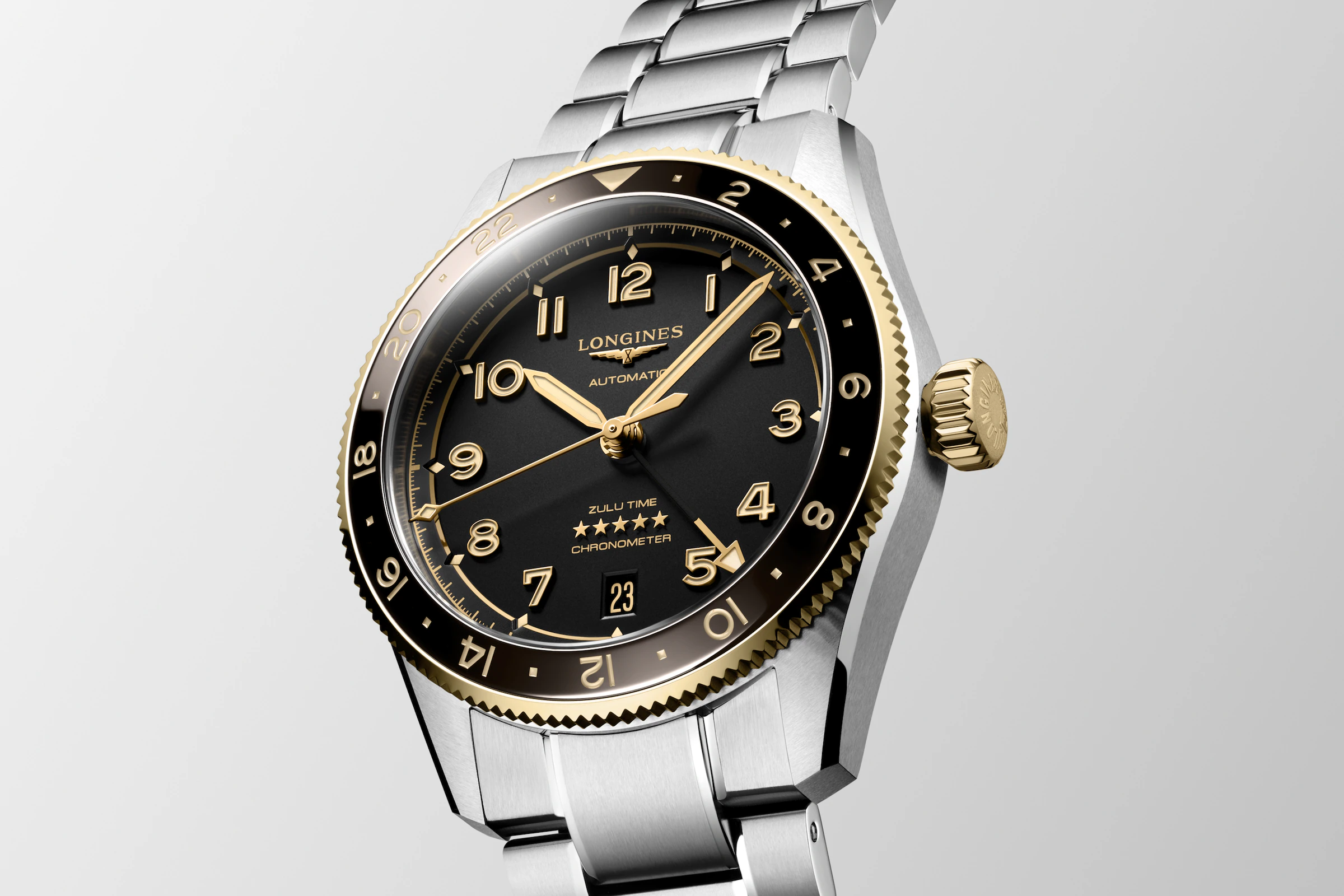 Premiera modelu Longines Spirit Zulu Time w 2022 roku rozpoczęła nowy rozdział w już i tak bogatej historii marki spod znaku skrzydlatej klepsydry. Zegarek z wieloma strefami czasowymi był kontynuacją precyzyjnych czasomierzy Longines, noszonych przez największych światowych pionierów podczas ich legendarnych wypraw. Do tej współczesnej legendy dołączy teraz o Longines Spirit Zulu Time w ergonomicznej i stylowej kopercie 39 mm. Model posiada bezel z żółtego złota podkreślonego wstawką z czekoladowobrązowej ceramiki oraz piaskowaną antracytową tarczę z okienkiem datownika na godzinie szóstej. Dopełnieniem dla stalowej koperty o średnicy 39 mm jest wymienna bransoleta ze stali nierdzewnej. Czasomierz objęty jest pięcioletnią, międzynarodową gwarancją producenta.