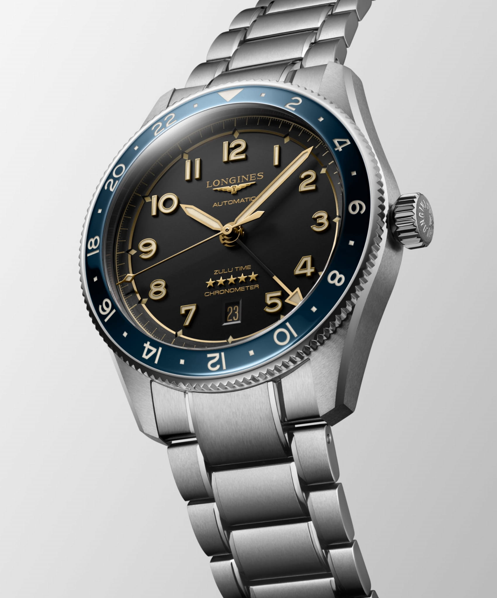 LONGINES Spirit Zulu Time to ucieleśnienie ponad stuletniego doświadczenia marki w produkcji zegarków z wieloma strefami czasowymi. Jego pochodzenie i nazwa sięgają roku 1925, kiedy to marka LONGINES wyprodukowała pierwszy zegarek na rękę podający godzinę w dwóch strefach czasowych, z tarczą ozdobioną flagą Zulu, odnoszącą się do litery „Z” oznaczającej uniwersalny czas dla lotników. Pod względem estetycznym LONGINES Spirit Zulu Time wyróżnia się starannym wykonaniem i wyjątkową dbałością o szczegóły. Jest wyposażony w dwukierunkowy obrotowy bezel z ceramiczną wstawką. Każdy model napędzany jest autorskim mechanizmem LONGINES z krzemową sprężyną balansu, wykazuje odporność na oddziaływanie pól magnetycznych i został certyfikowany jako chronometr przez COSC. Czasomierz objęty jest pięcioletnią, międzynarodową gwarancją producenta.