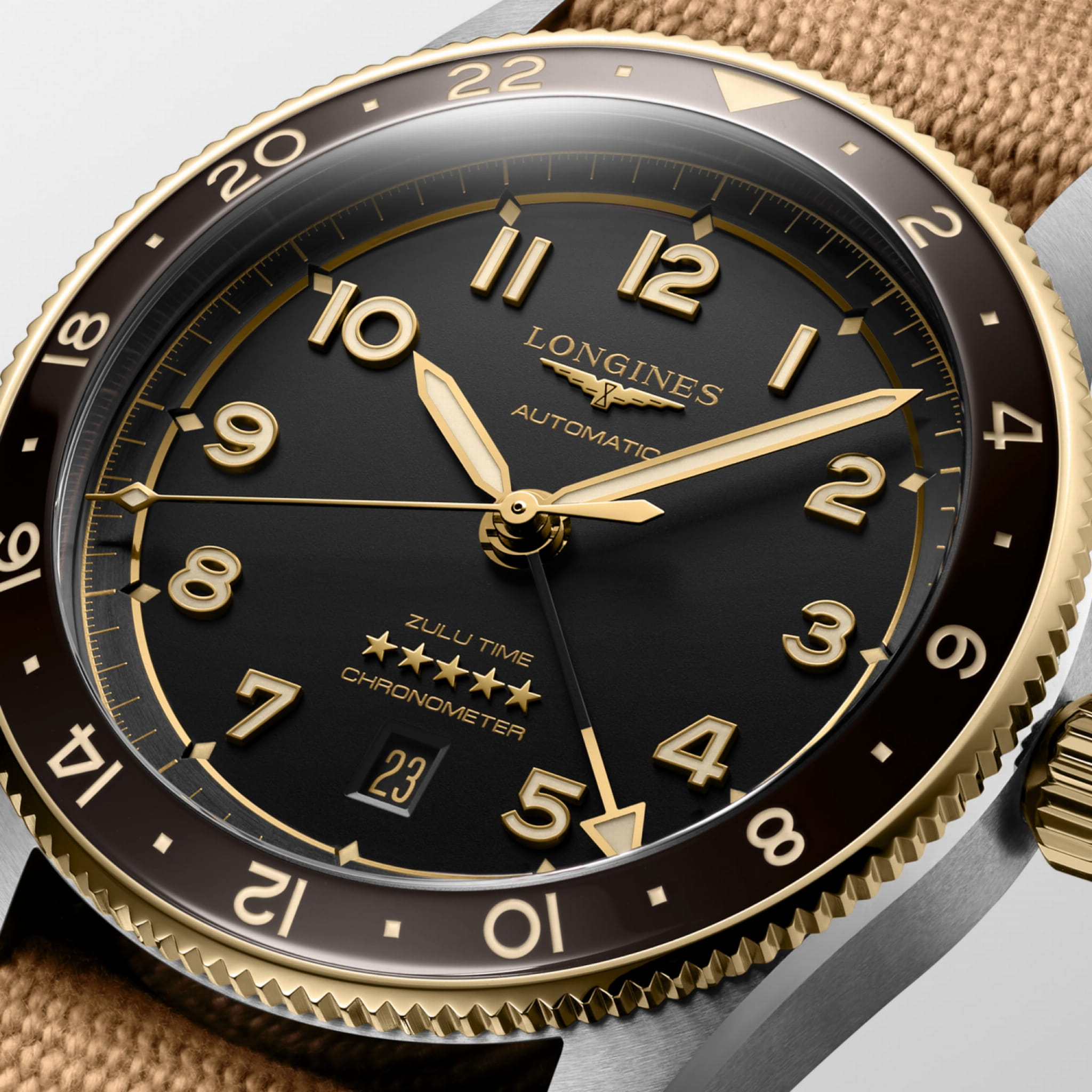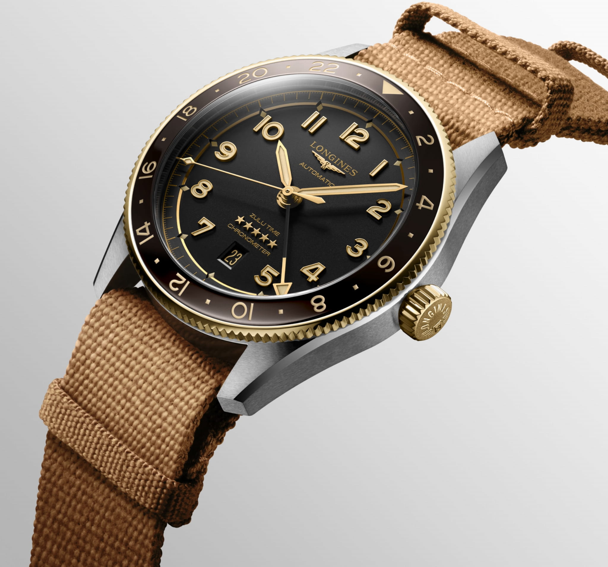 Premiera modelu Longines Spirit Zulu Time w 2022 roku rozpoczęła nowy rozdział w już i tak bogatej historii marki spod znaku skrzydlatej klepsydry. Zegarek z wieloma strefami czasowymi był kontynuacją precyzyjnych czasomierzy Longines, noszonych przez największych światowych pionierów podczas ich legendarnych wypraw. Do tej współczesnej legendy dołączy teraz o Longines Spirit Zulu Time w ergonomicznej i stylowej kopercie 39 mm. Model posiada bezel z żółtego złota podkreślonego wstawką z czekoladowobrązowej ceramiki oraz piaskowaną antracytową tarczę z okienkiem datownika na godzinie szóstej. Dopełnieniem dla stalowej koperty o średnicy 39 mm jest wymienna bransoleta ze stali nierdzewnej. Czasomierz objęty jest pięcioletnią, międzynarodową gwarancją producenta.